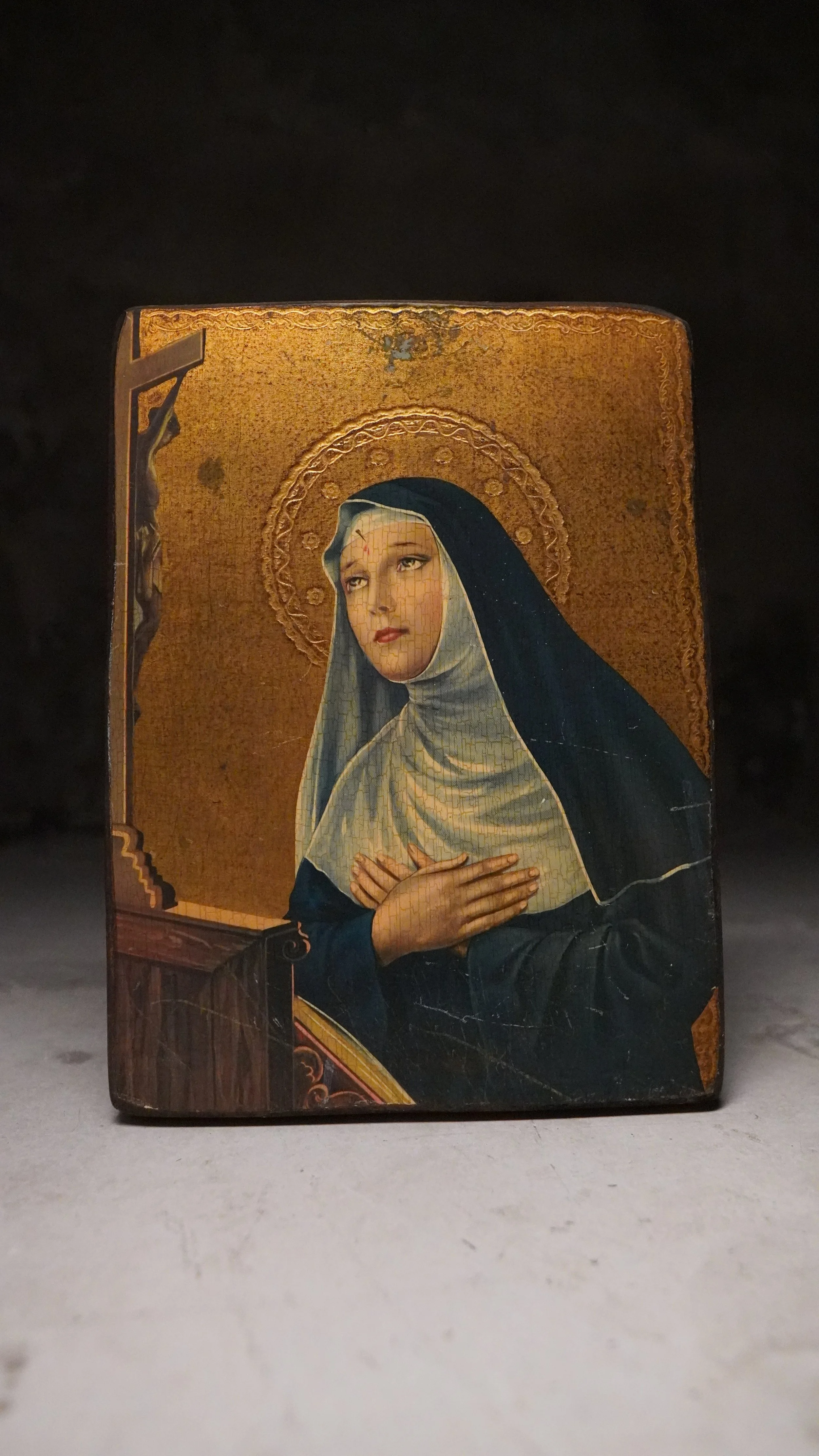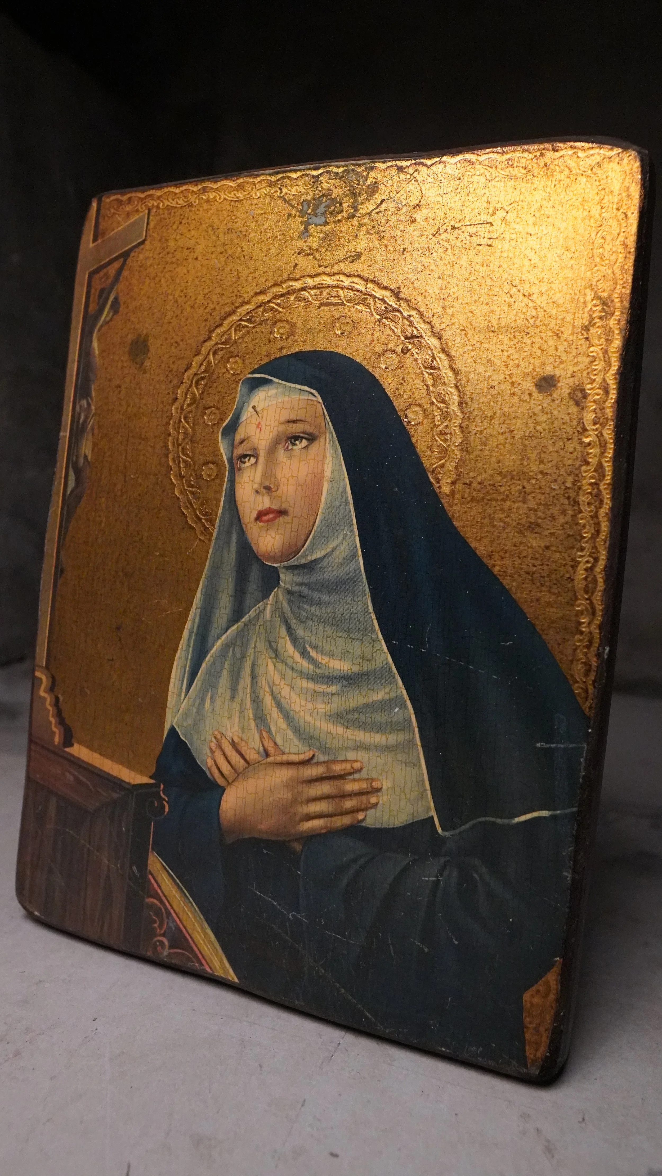 Stunning French gilt religious Picture on antique wood