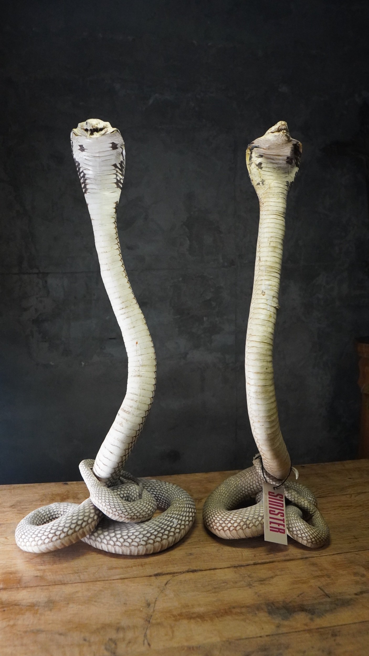Shop › Cobra Taxidermy Snake Image 1 of 7 Image 2 of 7 Image 3 of 7 Image 4 of 7 Image 5 of 7 Image 6 of 7 Image 7 of 7 Cobra Taxidermy Snake £180.00 Stunning example of a taxidermy cobra, beautiful coiled position.61cm Height Add To Cart Added! Stunning example of a taxidermy cobra, beautiful coiled position.61cm Height