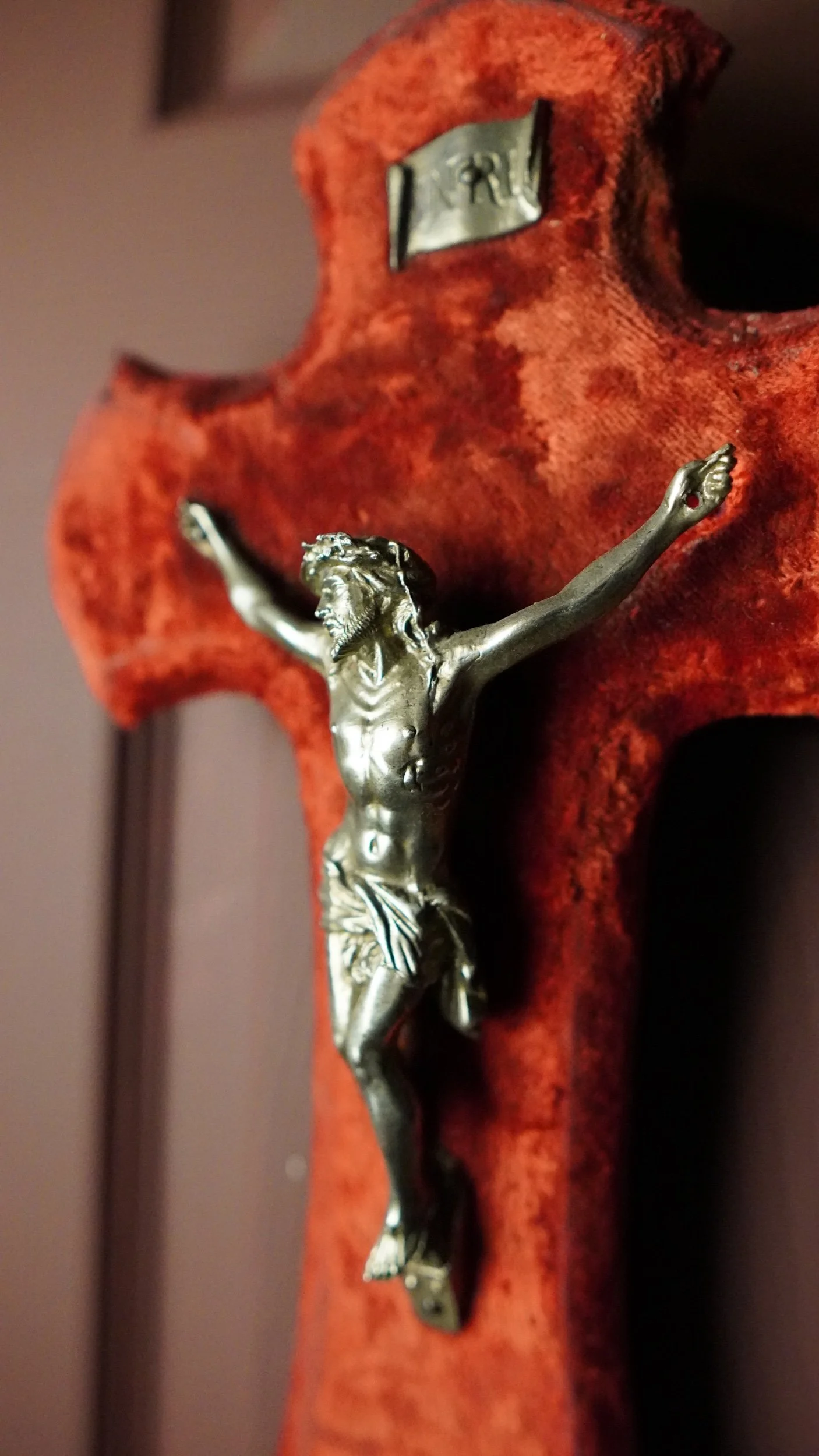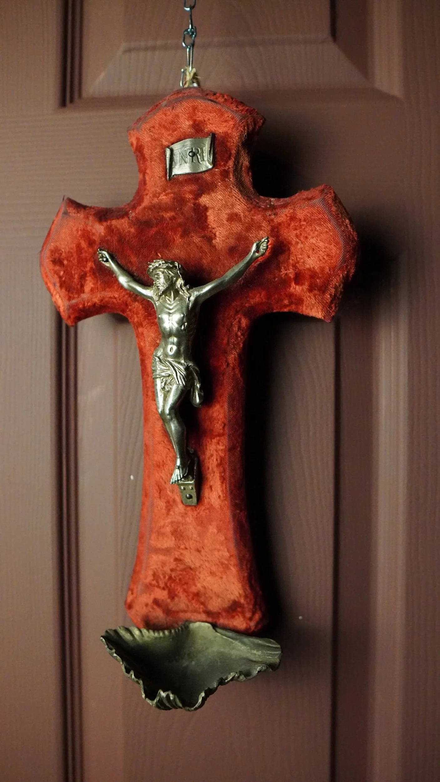 Red Velvet Crucifix with holy water font