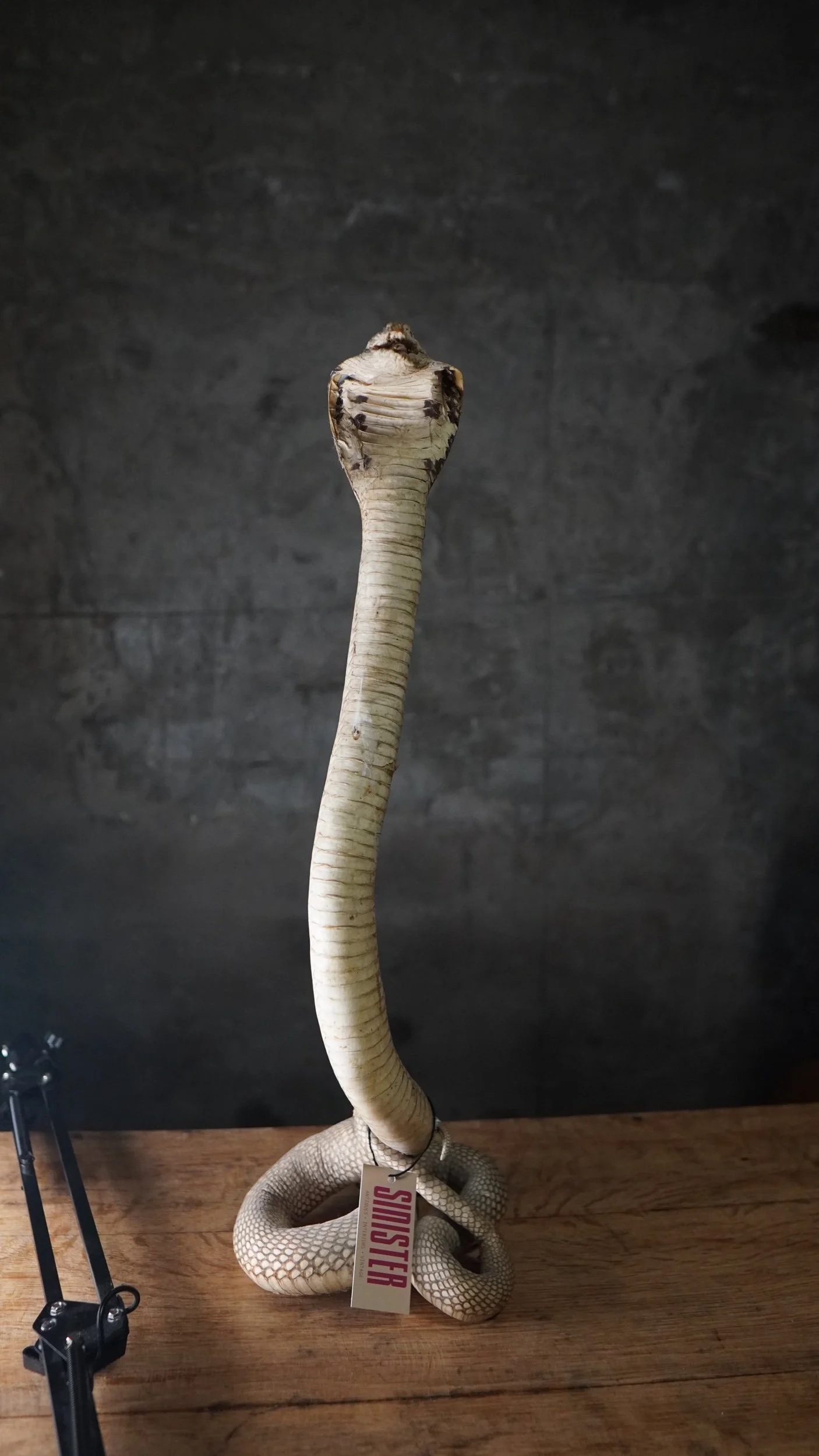 Shop › Cobra Taxidermy Snake Image 1 of 5 Image 2 of 5 Image 3 of 5 Image 4 of 5 Image 5 of 5 Cobra Taxidermy Snake £180.00 Stunning example of a taxidermy cobra, beautiful coiled position.61cm Height Add To Cart Added! Stunning example of a taxidermy cobra, beautiful coiled position.61cm Height