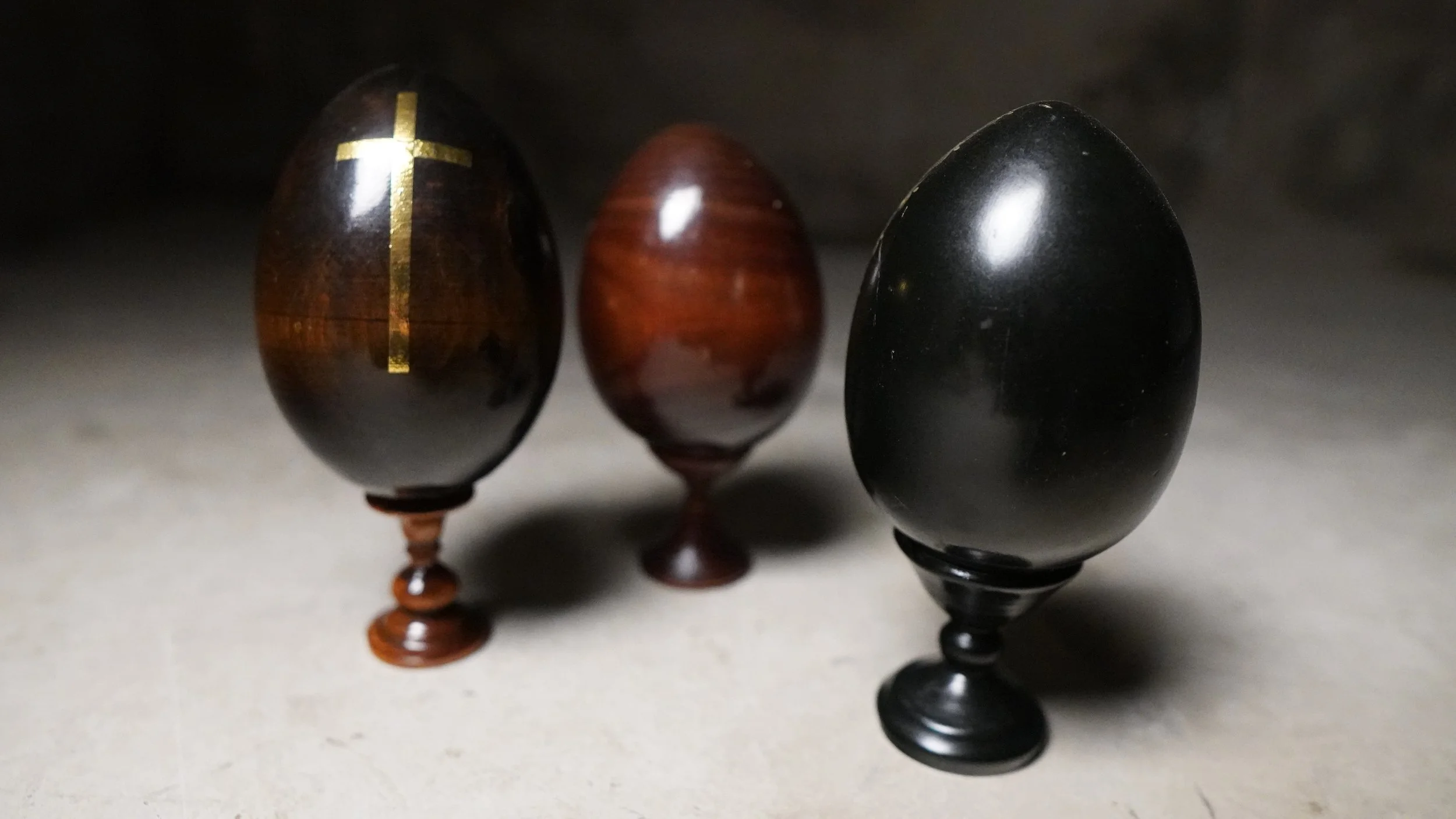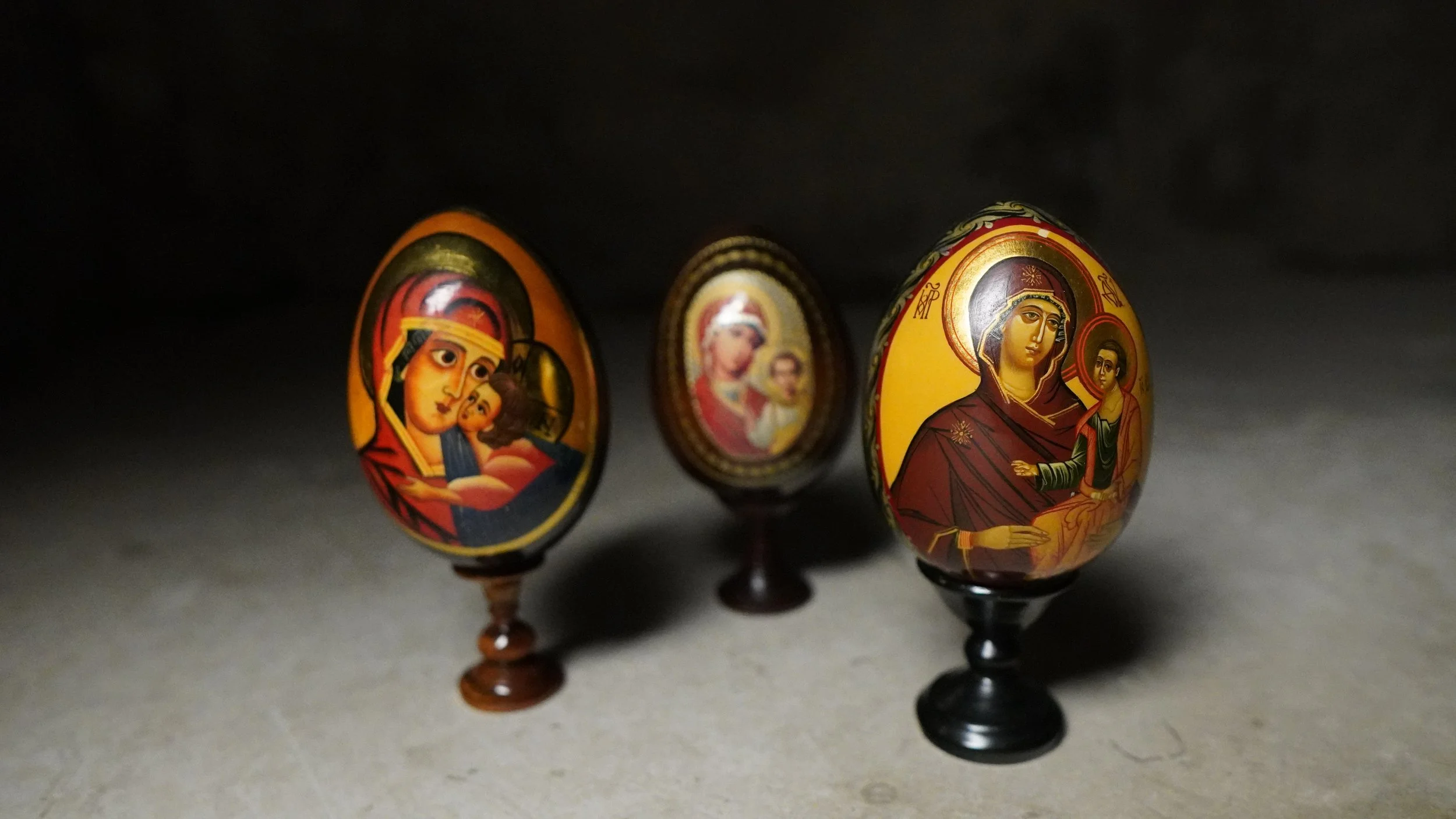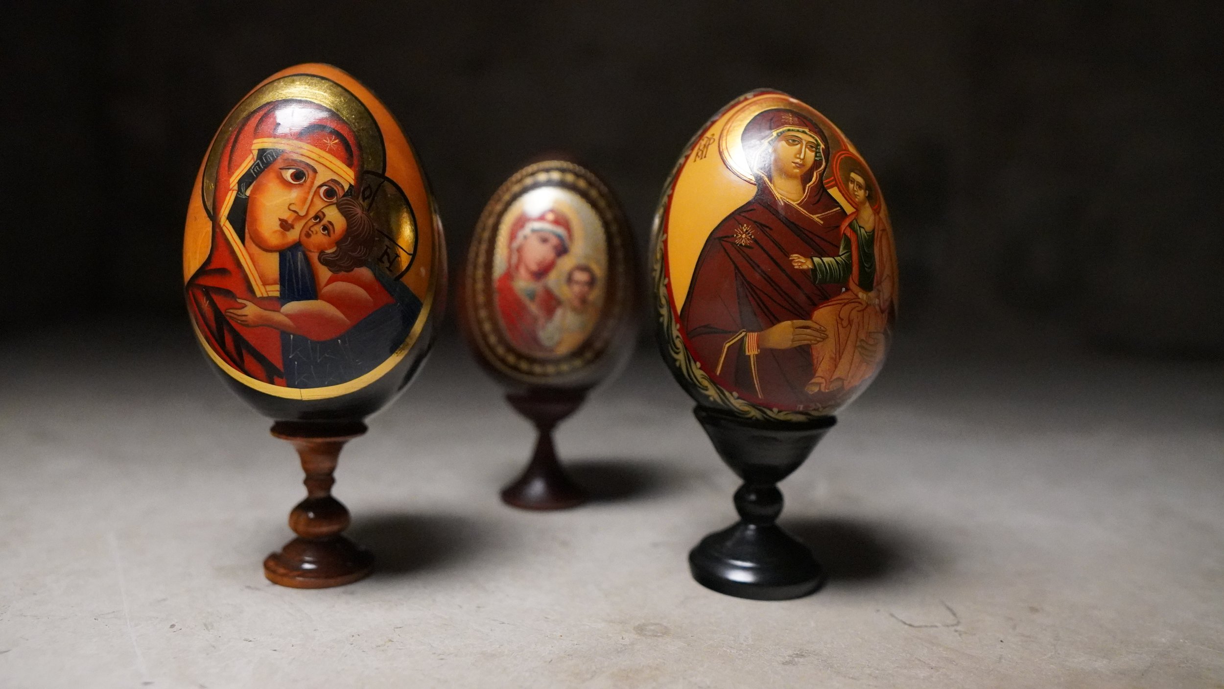 Matching set of 3 painted Religious eggs