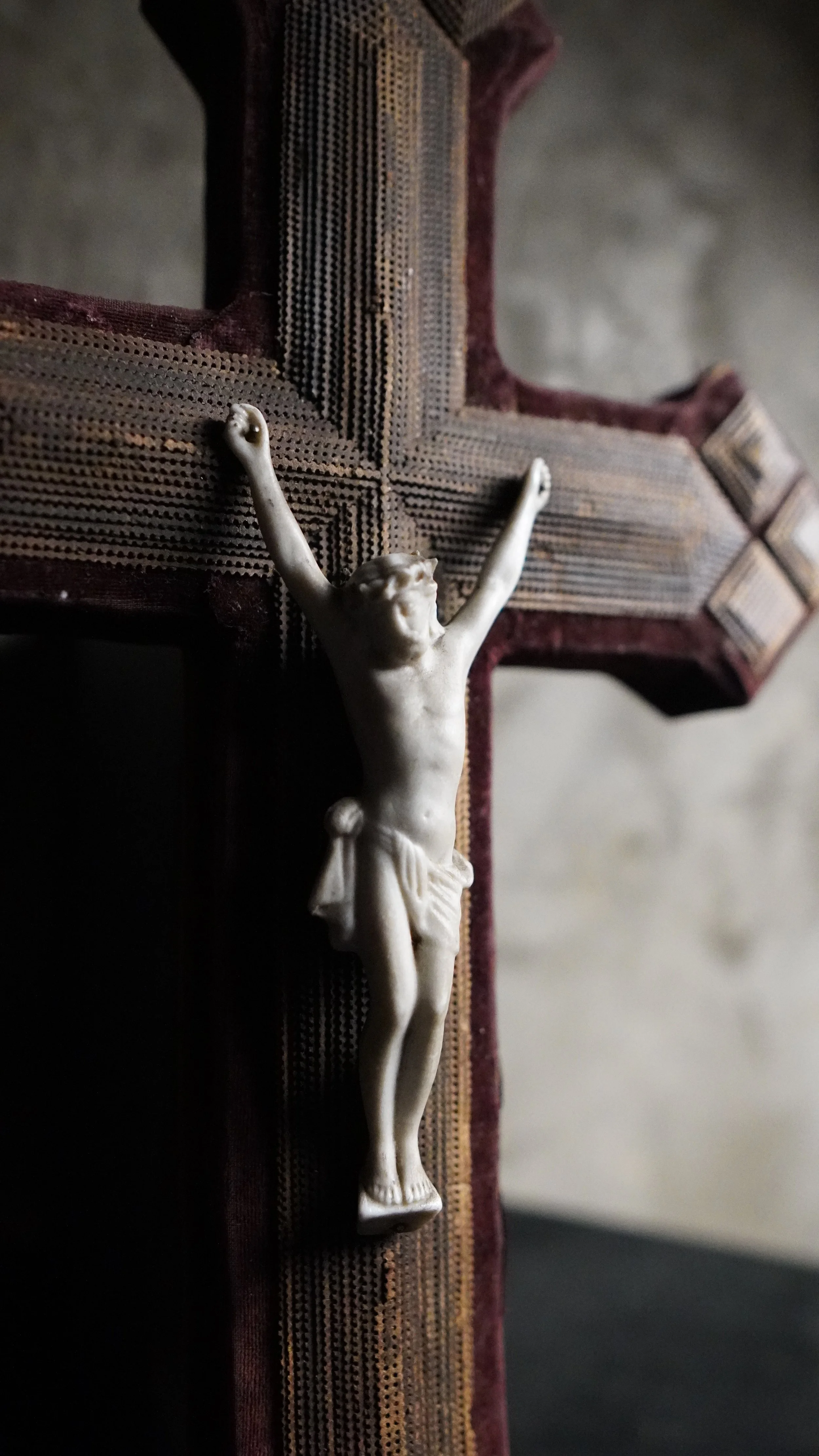 Lovely Burgundy red velvet crucifix