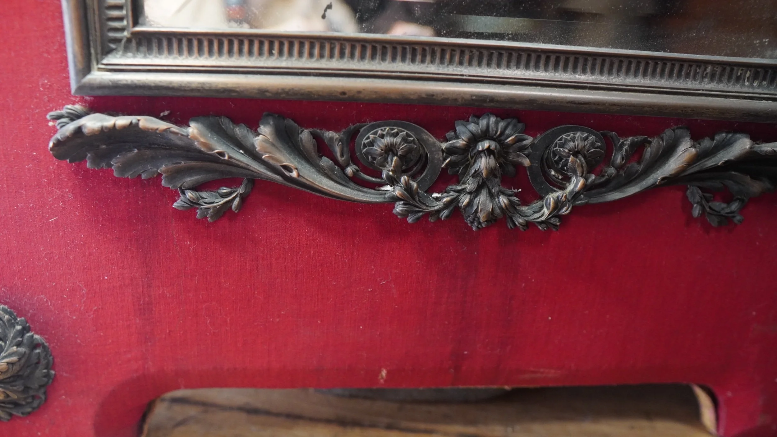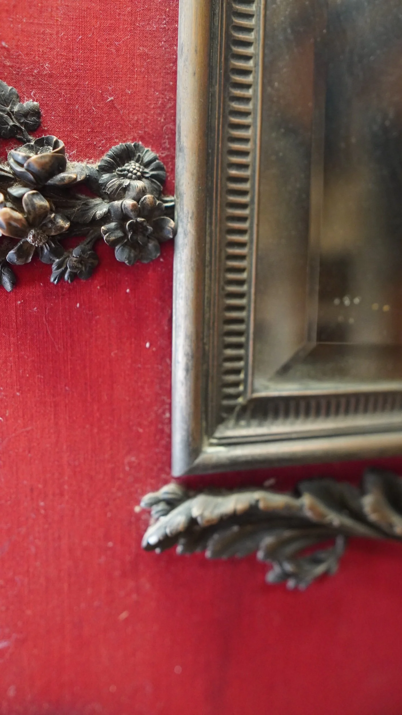 Shop › Antique Red French Chateau Bevel Mirror Image 1 of 5 Image 2 of 5 Image 3 of 5 Image 4 of 5 Image 5 of 5 Antique Red French Chateau Bevel Mirror £195.00 Stunning red velvet antique mirror with metal detailingBevelled edge on mirror Height 94cmWidth 52cm Add To Cart Added! Stunning red velvet antique mirror with metal detailingBevelled edge on mirror Height 94cmWidth 52cm