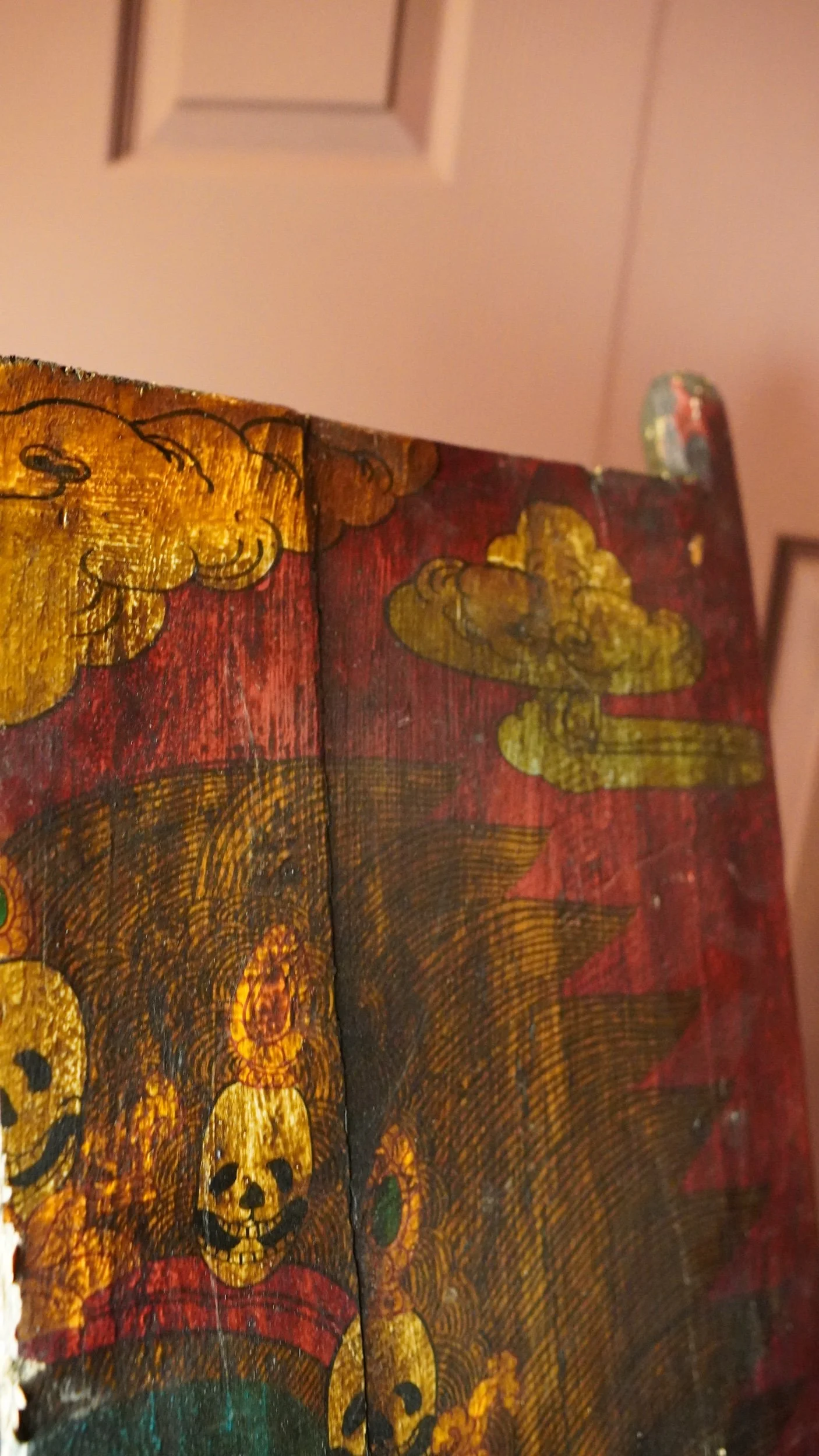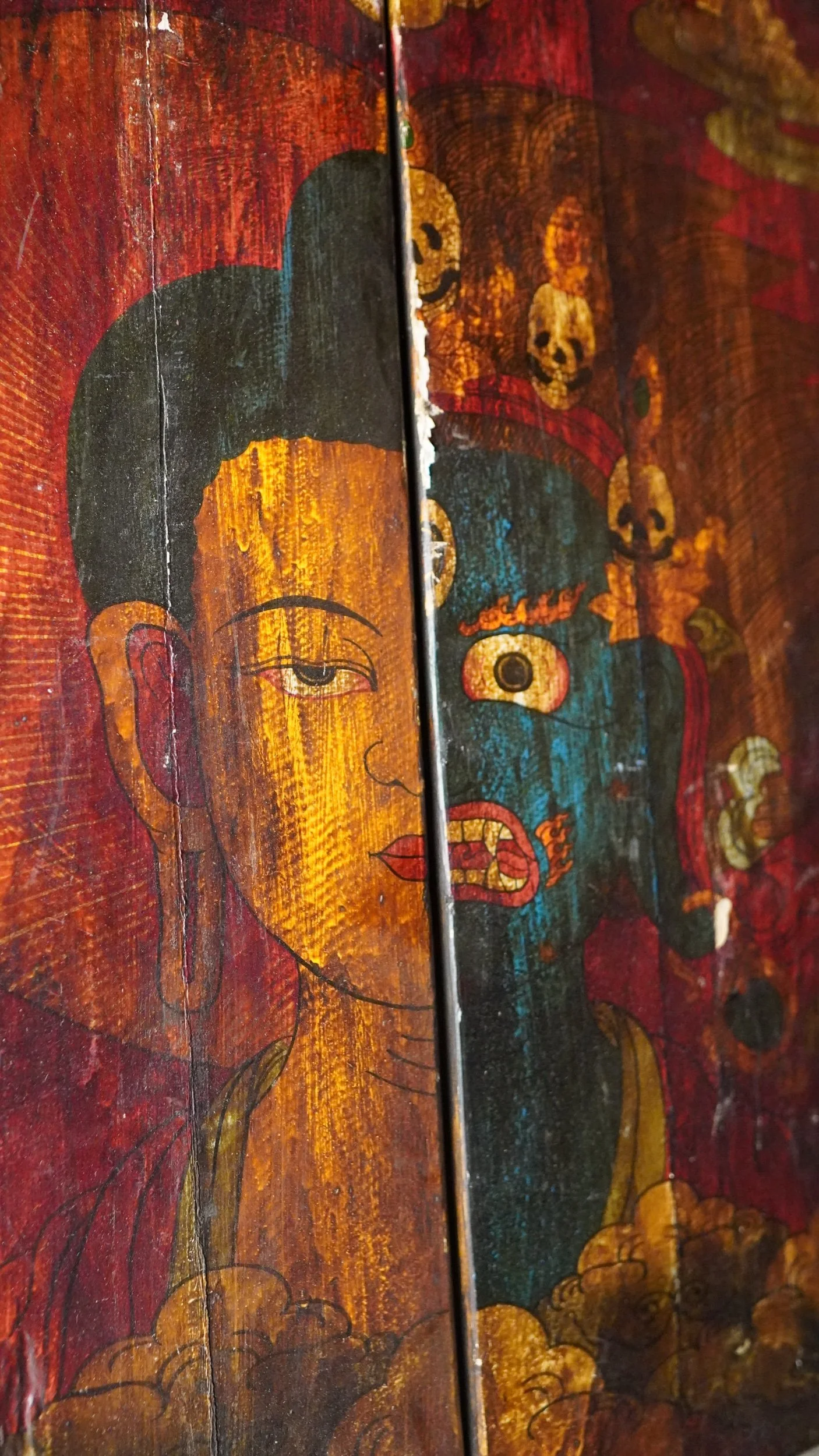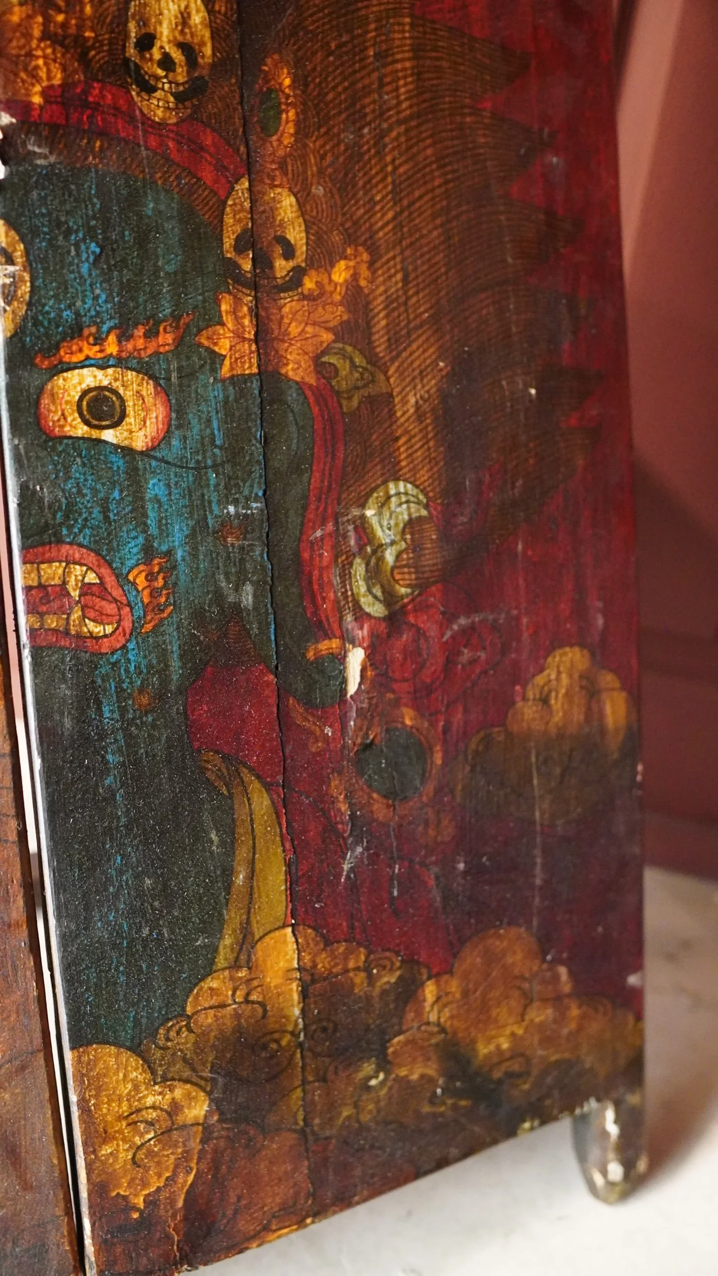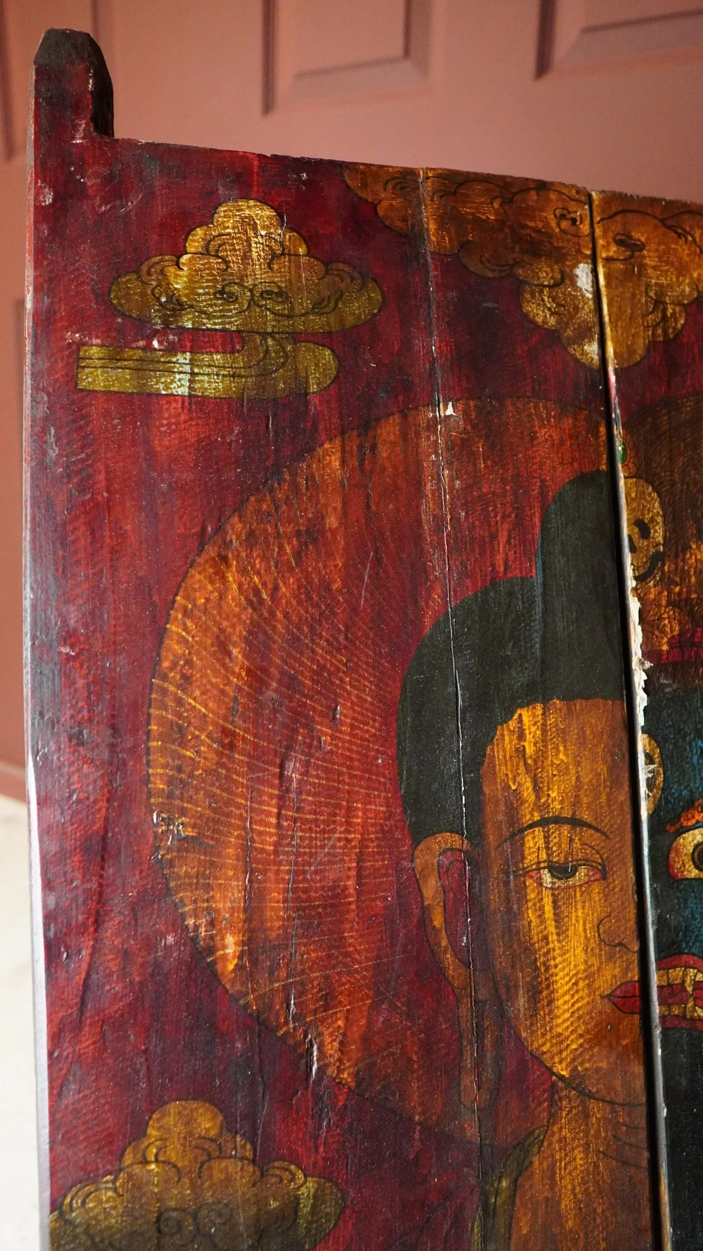 These Tibetan panels depict Buddha and Vajrapani, this symbolises the invincible power of a clear mind and enlightenment.