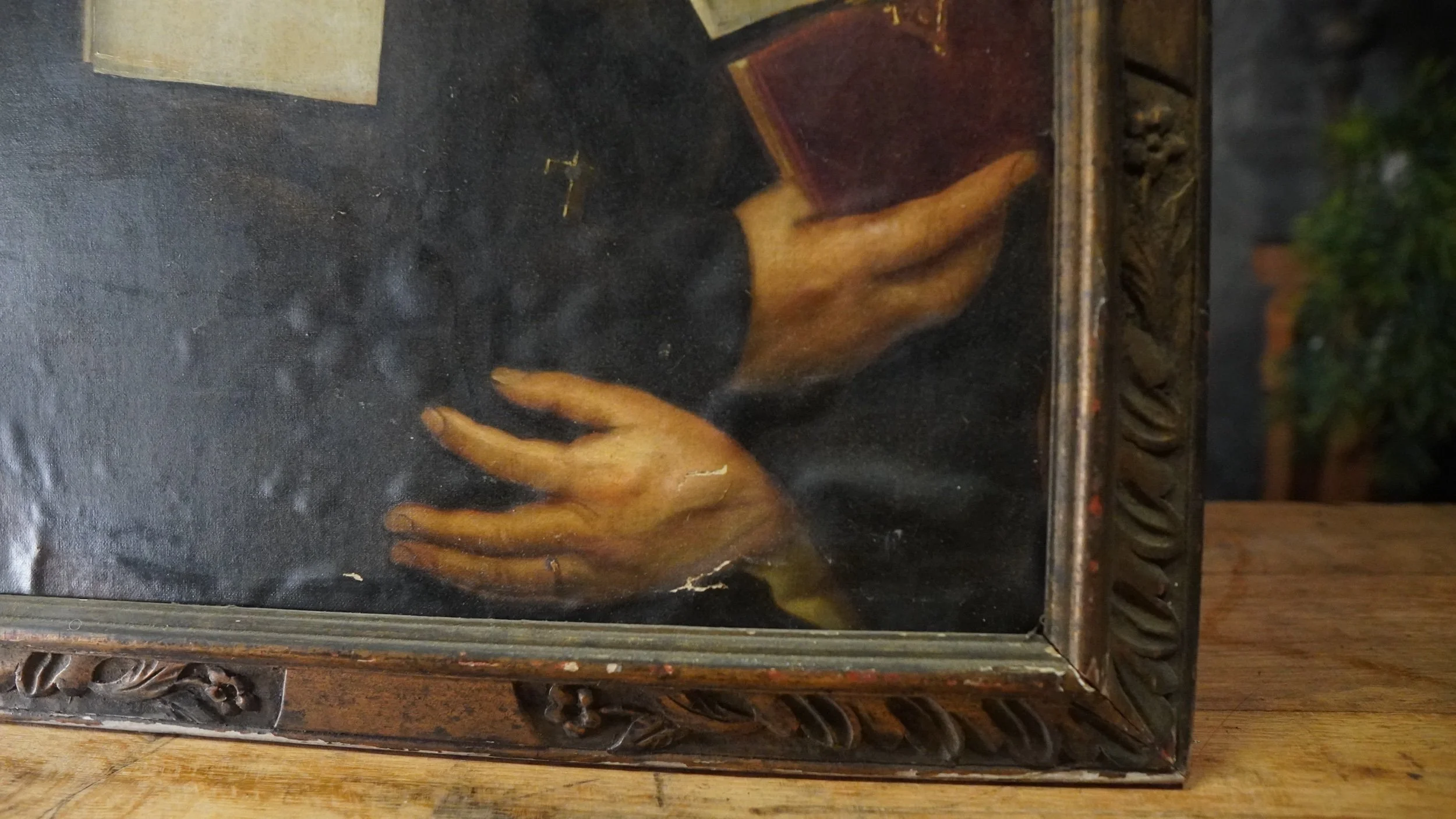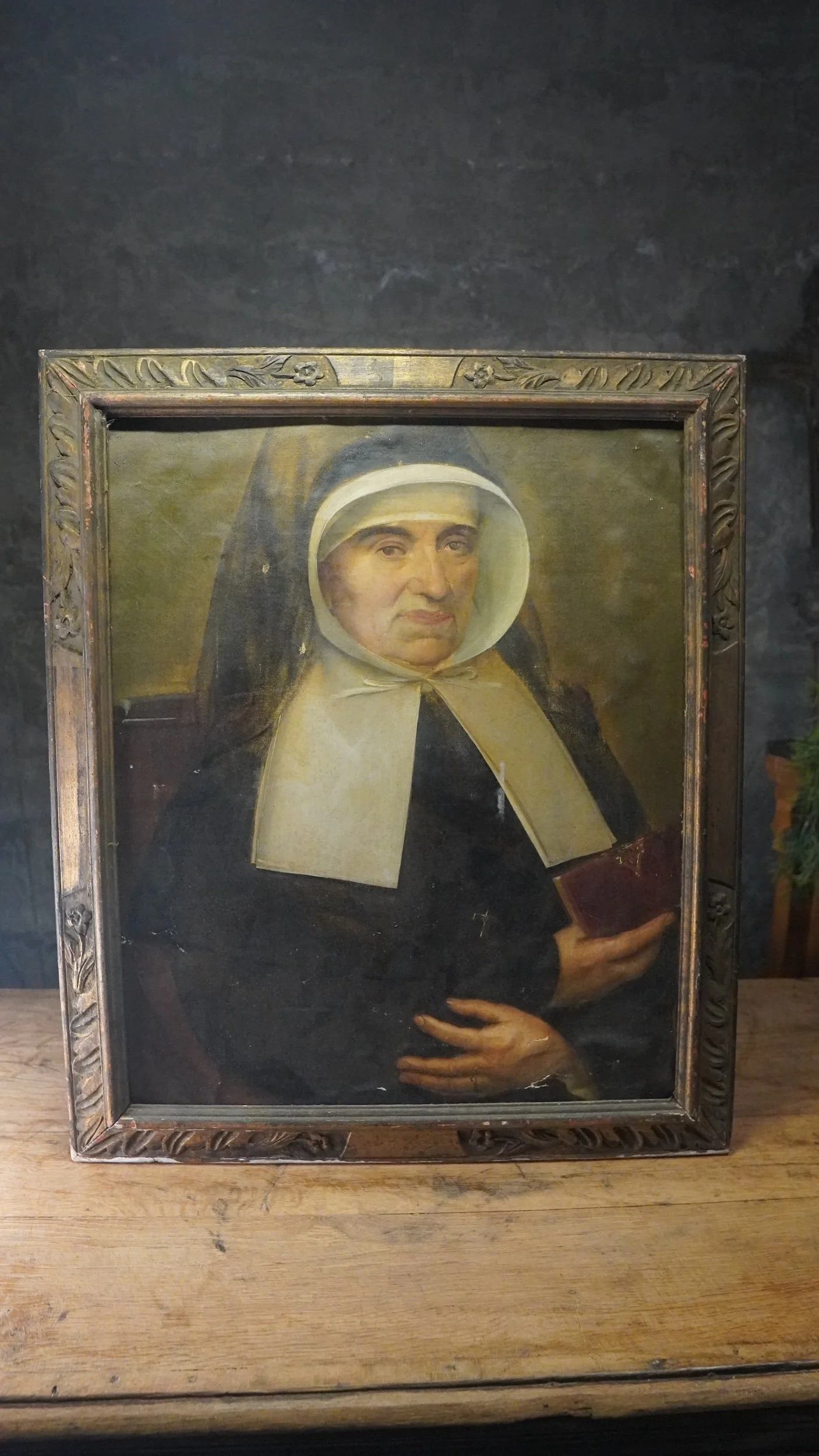 Antique oil painting of a Christian Nun