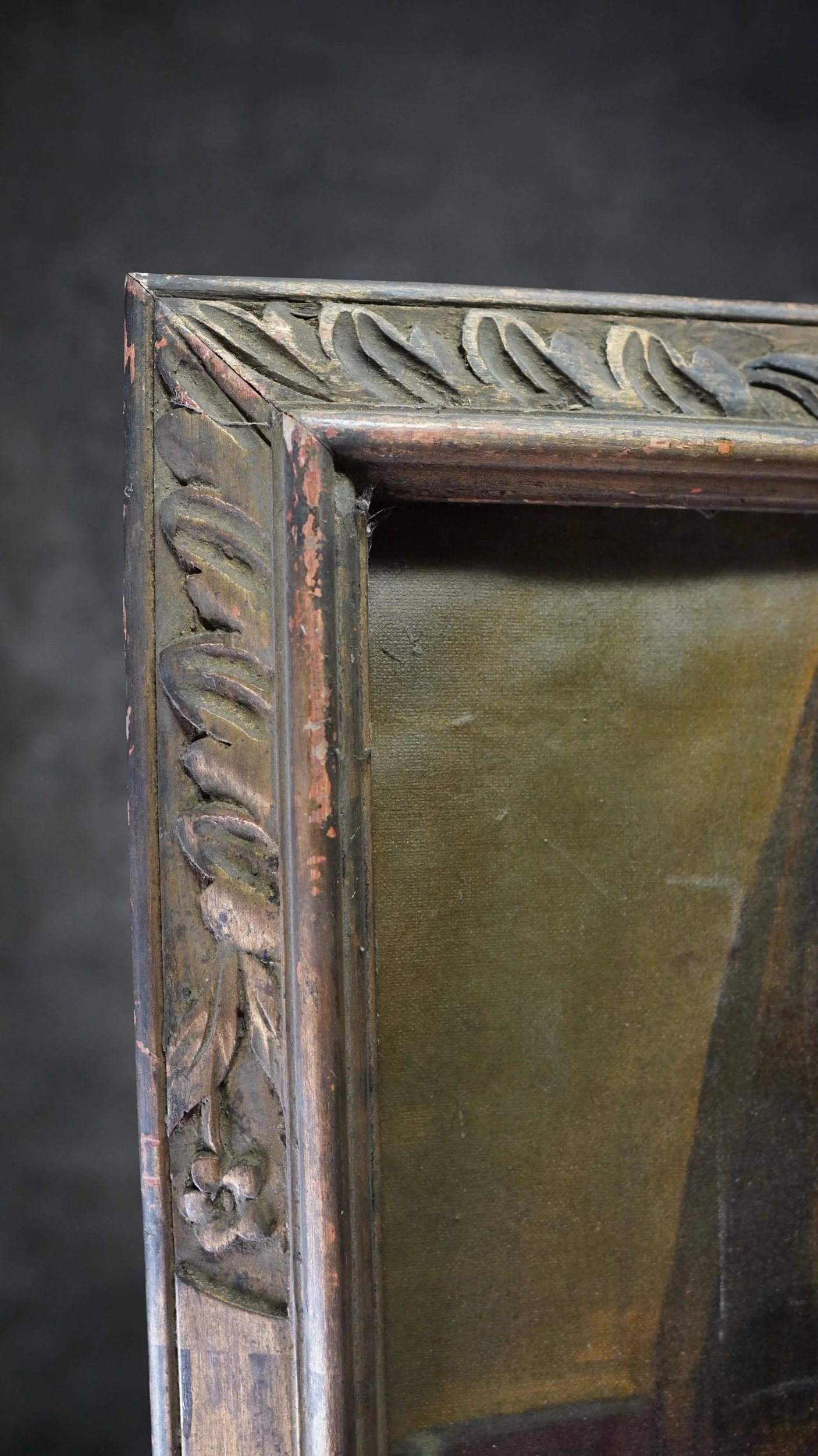 The board has been added at a later date and attached to the rear of the canvas